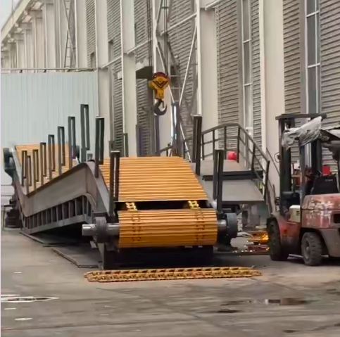 工人正在对已订准备马上发货的的链板进行组装工作