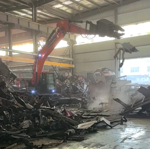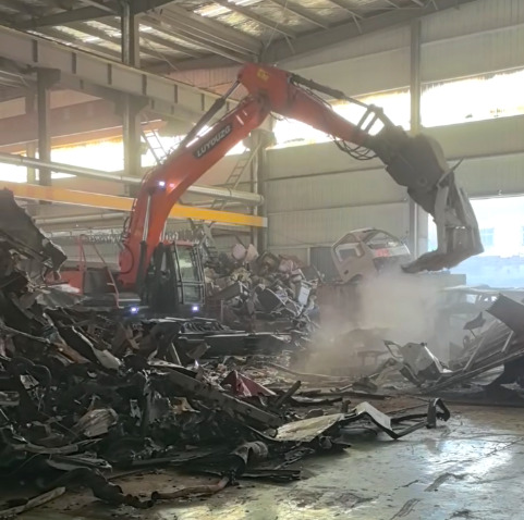 路友重工拆车机正在对汽车架进行拆解